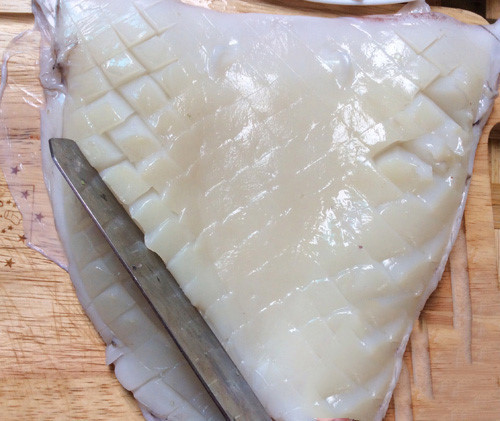 Mực làm sạch, để ráo, thái thành từng miếng vừa, khía vẩy rồng. Ướp mực với tỏi, hạt nêm, nước mắm, tiêu bột, dầu ăn trong 20 phút. Phi thơm 3 thìa dầu ăn với phần hành tỏi băm nhuyễn còn lại và ½ thìa ớt bột, cho mực vào xào nhanh tay với lửa lớn trong 5 phút, khi thấy mực vừa chín tới bạn trút ra đĩa. Ảnh: dacsanthonque.com.