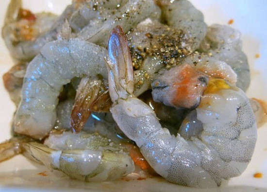 1. Tôm xào chua ngọt. Nguyên liệu: Tôm sú, me tươi, hành lá, mùi tàu, tỏi, gia vị: đường, muối, nước mắm, bột điều, tiêu. Tôm rửa sạch với nước muối loãng, bóc vỏ tôm, cắt bớt râu tôm, rút sạch phần chỉ đen trên lưng tôm. Cho tôm vào bát, thêm 1 thì canh muối, ½ thìa cà phê hạt tiêu, trộn đều, để 20 phút cho ngấm gia vị. Ảnh: vifood.vn.