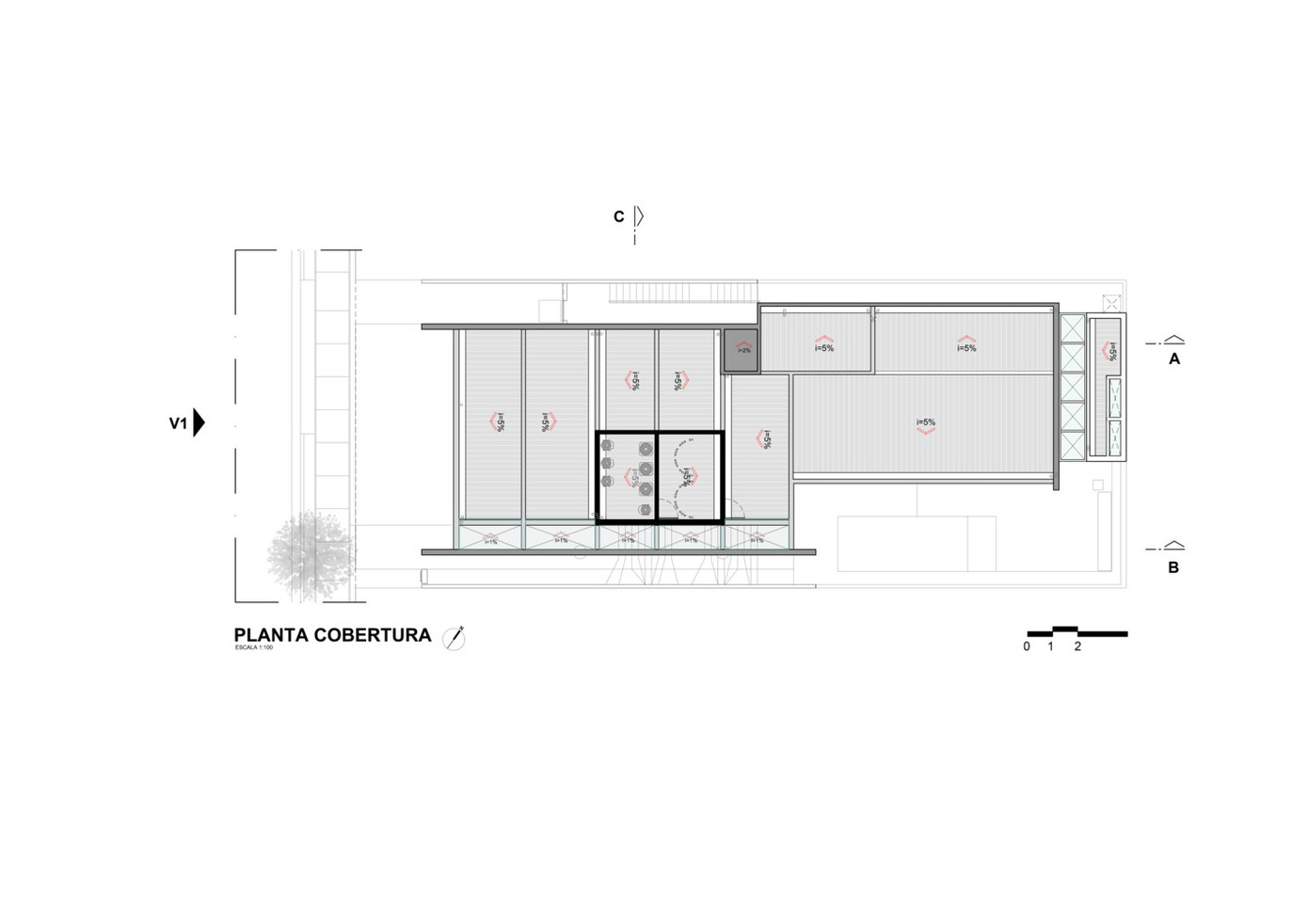 | Ngôi nhà này được xây dựng với diện tích 382m2, trên một khu đất có độ dốc lớn. Do đó, kiến trúc sư thiết kế ngôi nhà thành 2 tầng, nương theo đặc điểm của khu đất. |