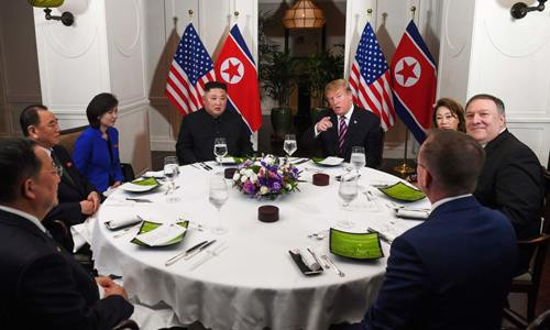 Buổi ăn tối thân mật giữa hai ông Kim và Trump có sự tham dự của các trợ tá. Phía Mỹ ngoài ông Trump còn có Ngoại trưởng Mike Pompeo, quyền Chánh văn phòng Nhà Trắng Mick Mulvaney và phiên dịch Lee Yun-hyang. Phía Triều Tiên ngoài ông Kim có ông Kim Yong-chol, phó Chủ tịch Ủy ban Trung ương Đảng Lao động Triều Tiên; Ngoại trưởng Ri Yong-ho và phiên dịch Sin Hye-yong.