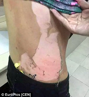 Theo Daily Mail, vụ việc xảy ra vào ngày 24/8 tại quán lẩu “Mr Hot Pot” ở Ôn Châu, Trung Quốc. Vào hôm đó, cô Lin (29 tuổi) cùng gia đình tới quán để ăn tối. Trong ảnh: Cô bị bỏng khắp mặt, cổ, vai và lưng sau khi bị nhân viên phục vụ đổ nước sôi.
