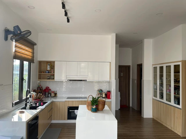 | Không gian bếp rộng và mở để mùi thức ăn dễ thoát ra ngoài, cũng như gió mát từ vườn có thể thổi vào. |
