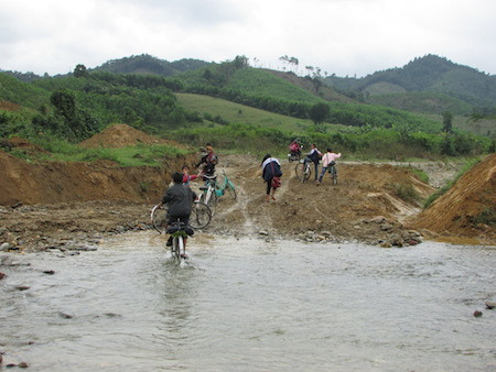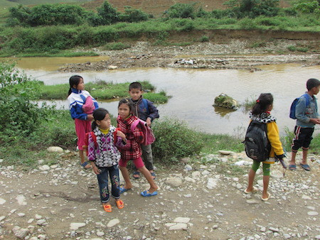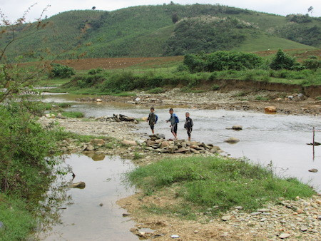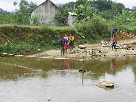 Em Vi Thị Thương (học sinh Trường THCS Hương Tiến) chia sẻ: “Chúng em muốn đi học nhưng khi nước to, chảy xiết là chúng em phải ở nhà, từ khi cầu sập là chúng em ở nhà nhiều hơn”.