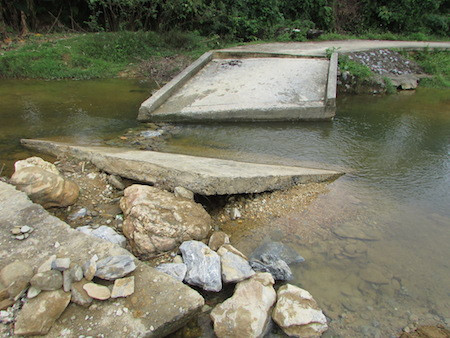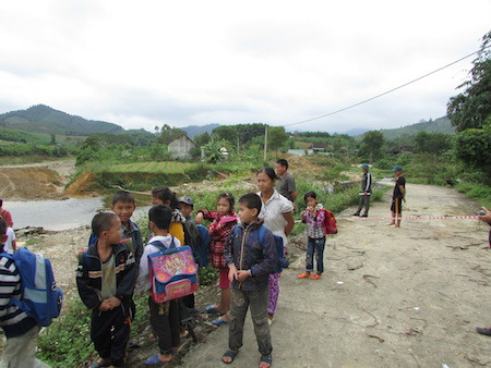 Chị Lim Thị Thoa (bản Chà Luân) cho biết: “Con tôi học lớp 5 rồi nhưng từ khi cầu sập, nhìn con đi học, tôi lại rất lo, mưa to là tôi không thể cho cháu đi học vì lội qua con khe nguy hiểm lắm”.