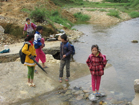 Việc phải lội qua con suối mỗi ngày để đến trường đã trở thành thói quen của các em học sinh hai bản Xốp Pe và Chà Luân. Điều này gây ra rất nhiều khó khăn, nguy hiểm cho các em nhỏ lúc đến trường.