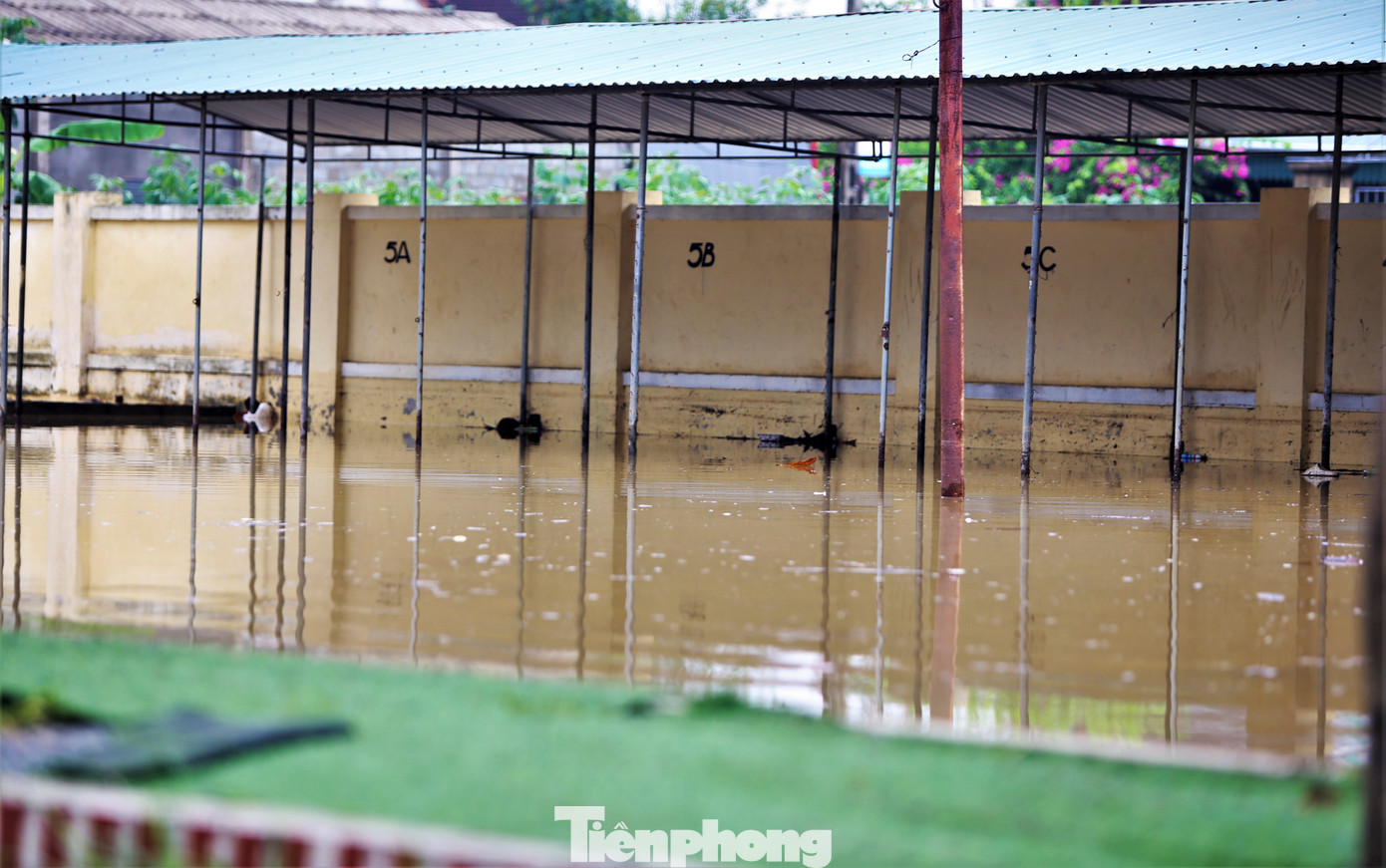 Nước lũ và nước mưa tràn vào không kịp tiêu thoát nên nhà trường đã cho 432 học sinh của 14 lớp nghỉ học.