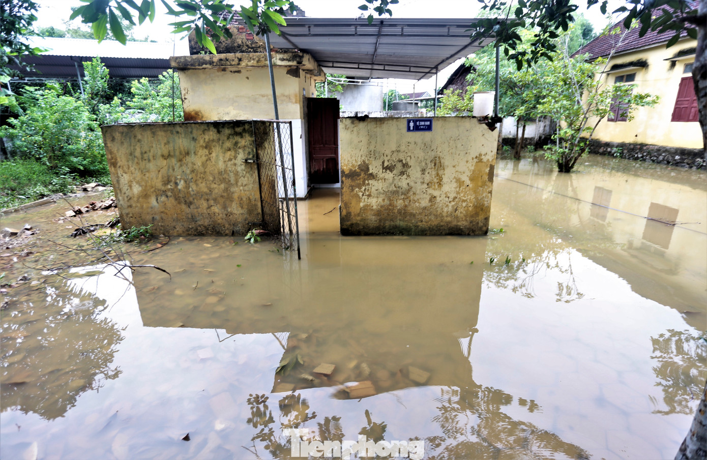Nước lũ tràn vào, ngập nhà vệ sinh và phía sau dãy nhà hiệu bộ.