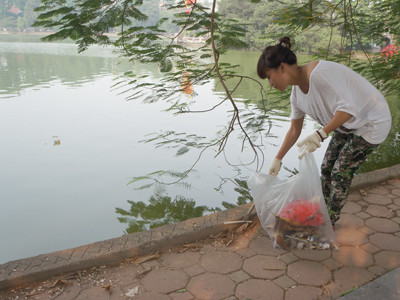 Thành viên của nhóm nhặt rác Nguyễn Thùy Dung đến từ Hà Nội nói, sau một lần tình cờ đi qua bờ hồ Hoàn Kiếm, thấy những đứa trẻ và những người đàn ông lớn tuổi xách những túi rác, Dung đã dừng lại tìm hiểu.
