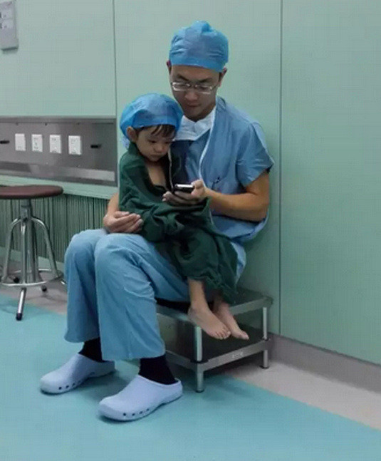 Được biết, những hình ảnh này được chụp tại Bệnh viện nhi tỉnh Chiết Giang (Trung Quốc). Người bác sĩ trong ảnh là Shi Zhuo, một bác sĩ phẫu thuật tim và hiện là cha của một bé gái 6 tuổi, do đó anh cũng rất am hiểu tâm lý trẻ em.