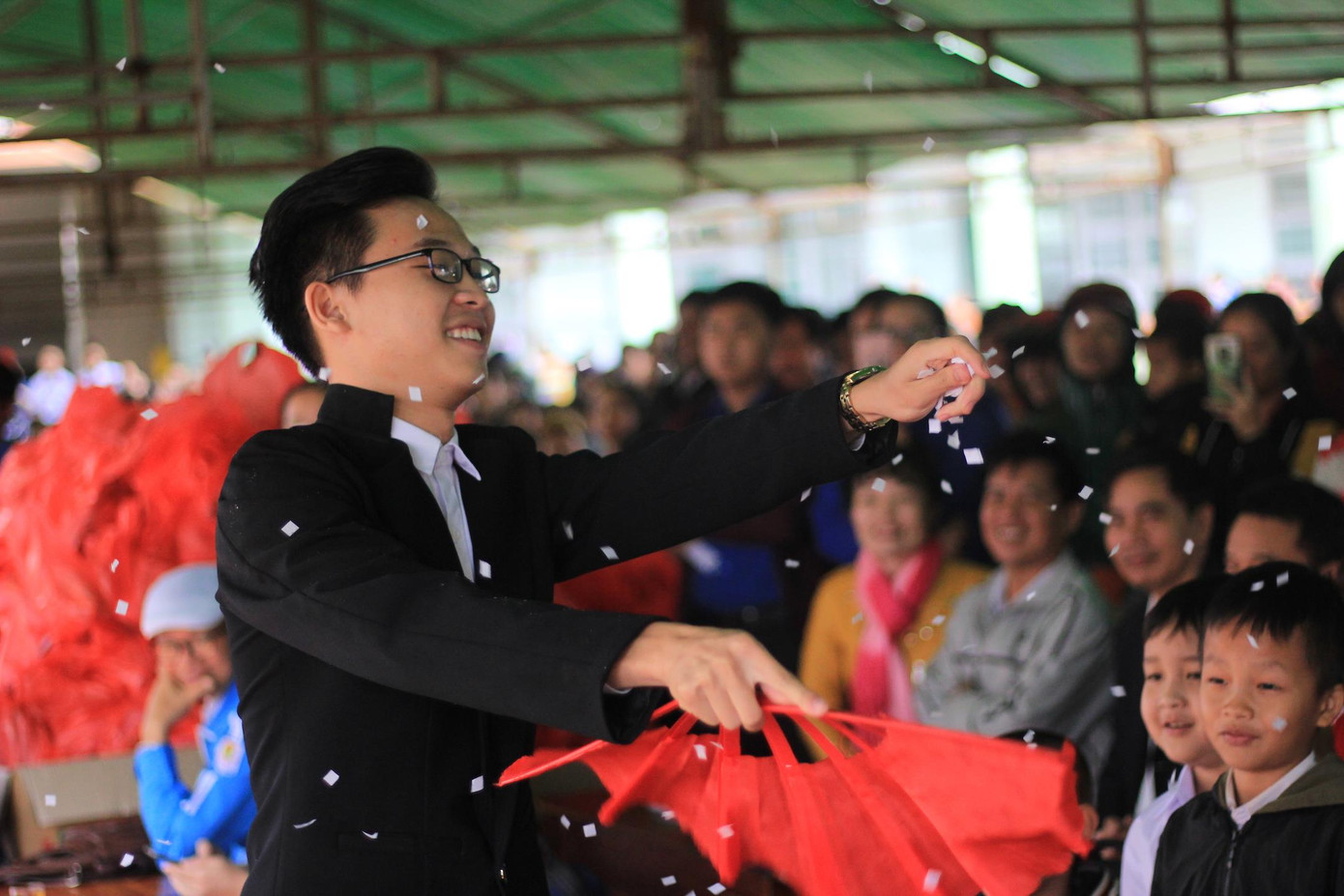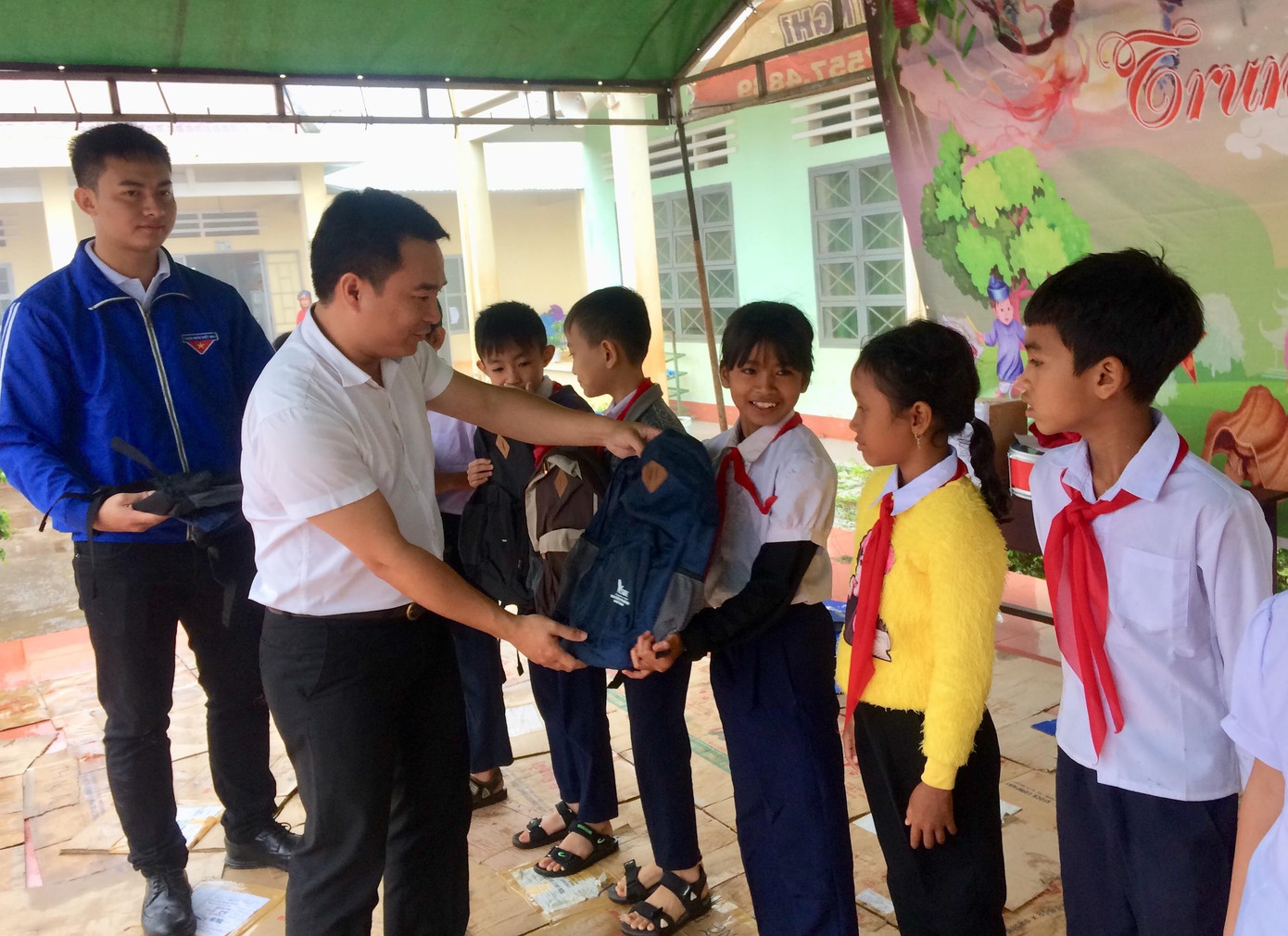 Sau các tiết mục văn nghệ vui tươi, anh Đỗ Duy Nam - Phó Bí thư Tỉnh đoàn Gia Lai tặng cặp cho các em học sinh vượt khó học giỏi.