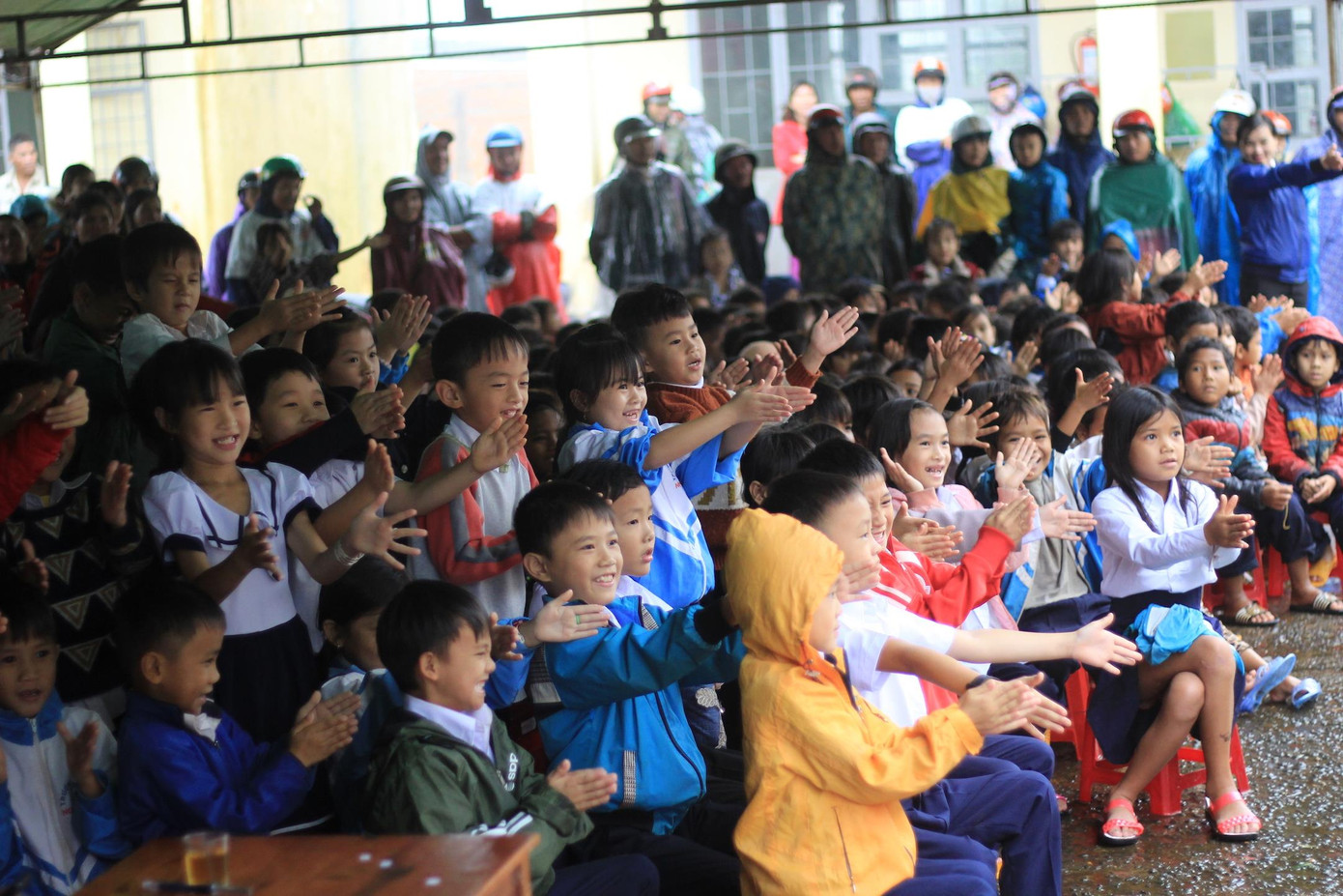 Ngày 6/9 có mưa, UBND huyện Chư Prông đã bố trí nguồn kinh phí để dựng rạp trú mưa cho các em học sinh trường Tiểu học Nguyễn Du đón tết trung thu sớm.