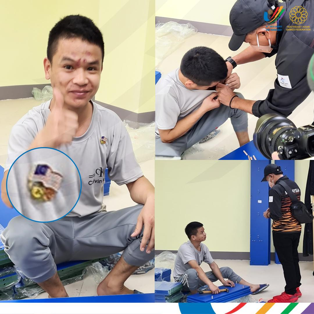 Cụ thể, khi quan sát các công nhân Việt Nam đang chăm chỉ làm việc hết công suất để chuẩn bị cho SEA Games, ông Azmi Ahmad bất ngờ lấy ra một chiếc kỷ niệm chương của đoàn thể thao nước này. Vị trưởng đoàn Malaysia đã đeo lên ngực áo anh công nhân chiếc kỷ niệm chương như một lời cảm ơn những đóng góp thầm lặng của những người công nhân.