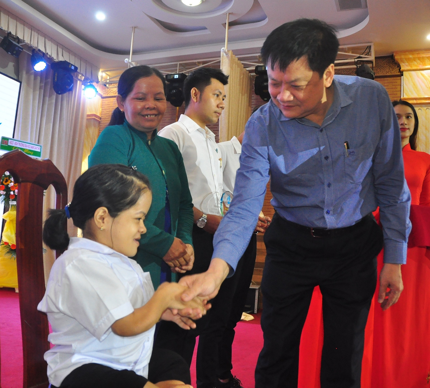 Nhí được mẹ bế lên sân khấu Ngoại hình của Nhí nhỏ nhắn như đứa trẻ, tay chân co quắp lại, ngồi 1 chỗ, mọi việc đi lại đều do mẹ giúp đỡ. "Mẹ là đôi chân của em, giúp em mọi việc từ đi đứng đến sinh hoạt, vì thế em sẽ cố gắng học để không phụ lòng mẹ", Nhí xúc động nói.