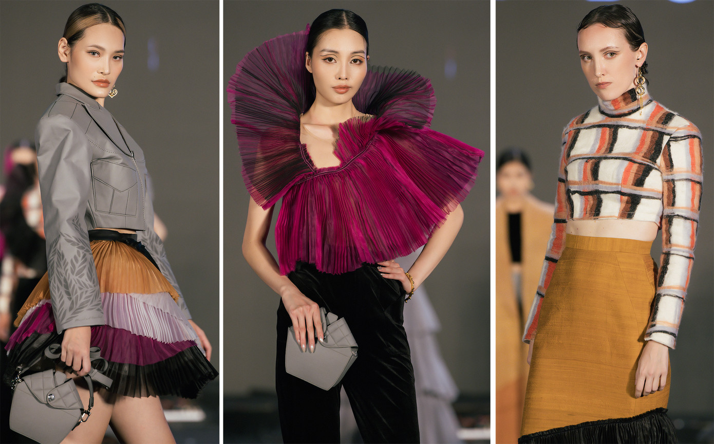 Còn NTK Eshter Trâm mang tới những thiết kế với phom dáng tối giản, khả năng kết hợp cao để có thể kéo dài vòng đời cho sản phẩm. Trong khi đó, NTK Tạ Thị Hương gửi gắm tình yêu của mình với nghệ thuật hát Bội thông qua những mẫu quần áo đa năng, không lỗi mốt.