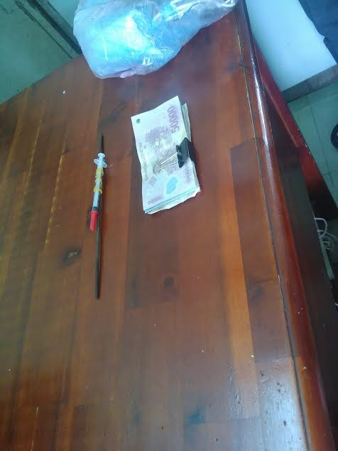 Anh T. hoảng sợ, móc túi đưa cho Quốc tiền. Khi Quốc cầm tiền vừa nhảy xuống xe thì bị công an ập đến bắt giữ.