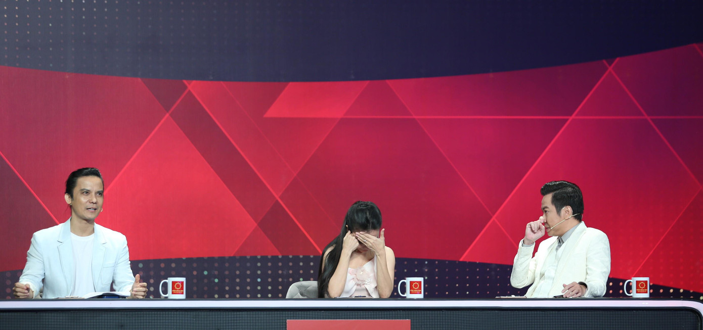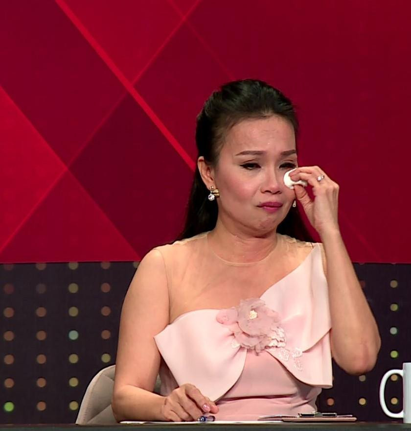 “Chị Tư” khóc nghẹn phải mất tới hơn 10 phút, đến nỗi hai giám khảo đã nhận xét xong nhưng nữ ca sĩ vẫn không thể ngừng rơi nước mắt khiến Quốc Đại lo lắng, Quyền Linh cũng nhìn với vẻ xót xa.