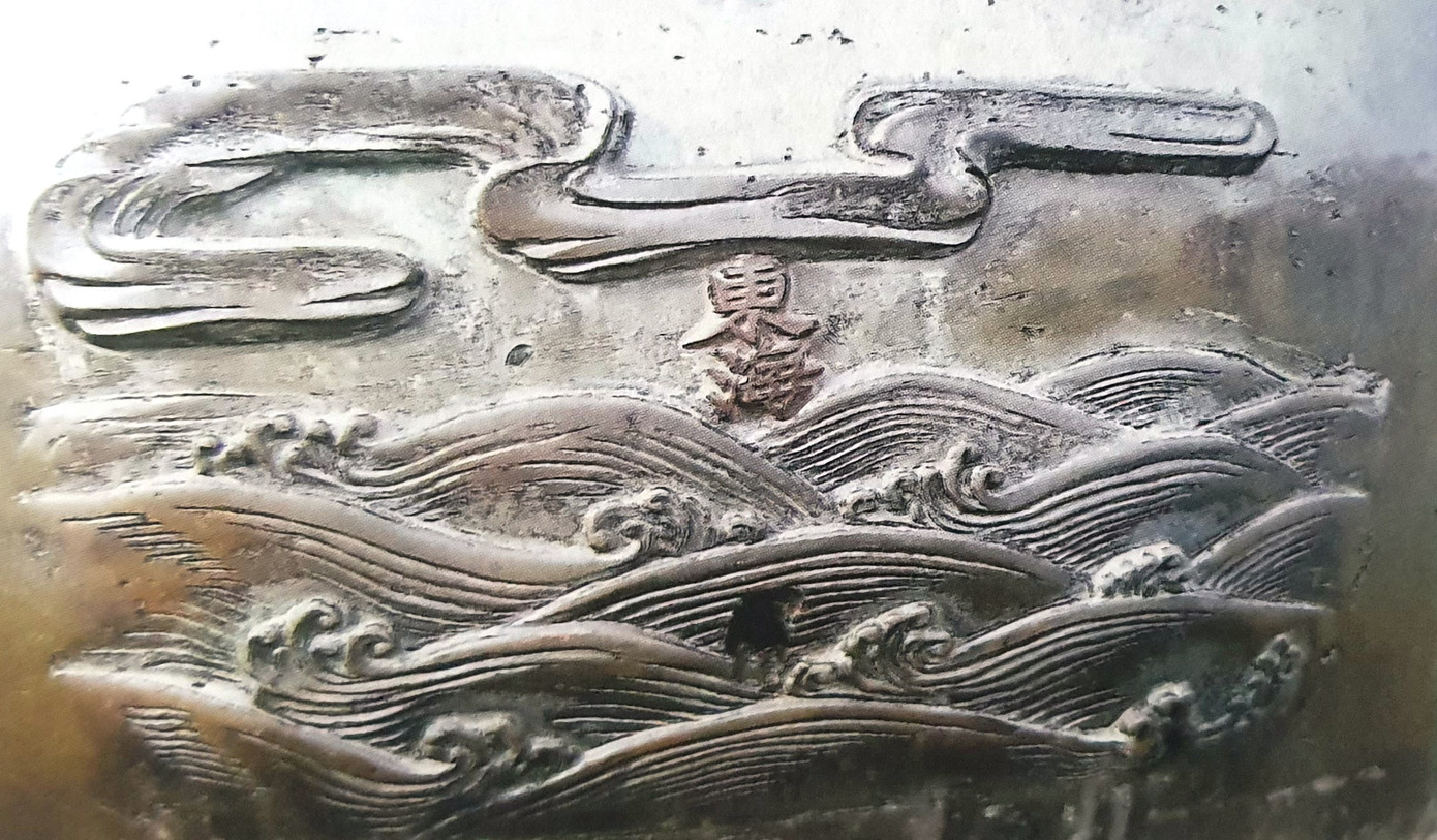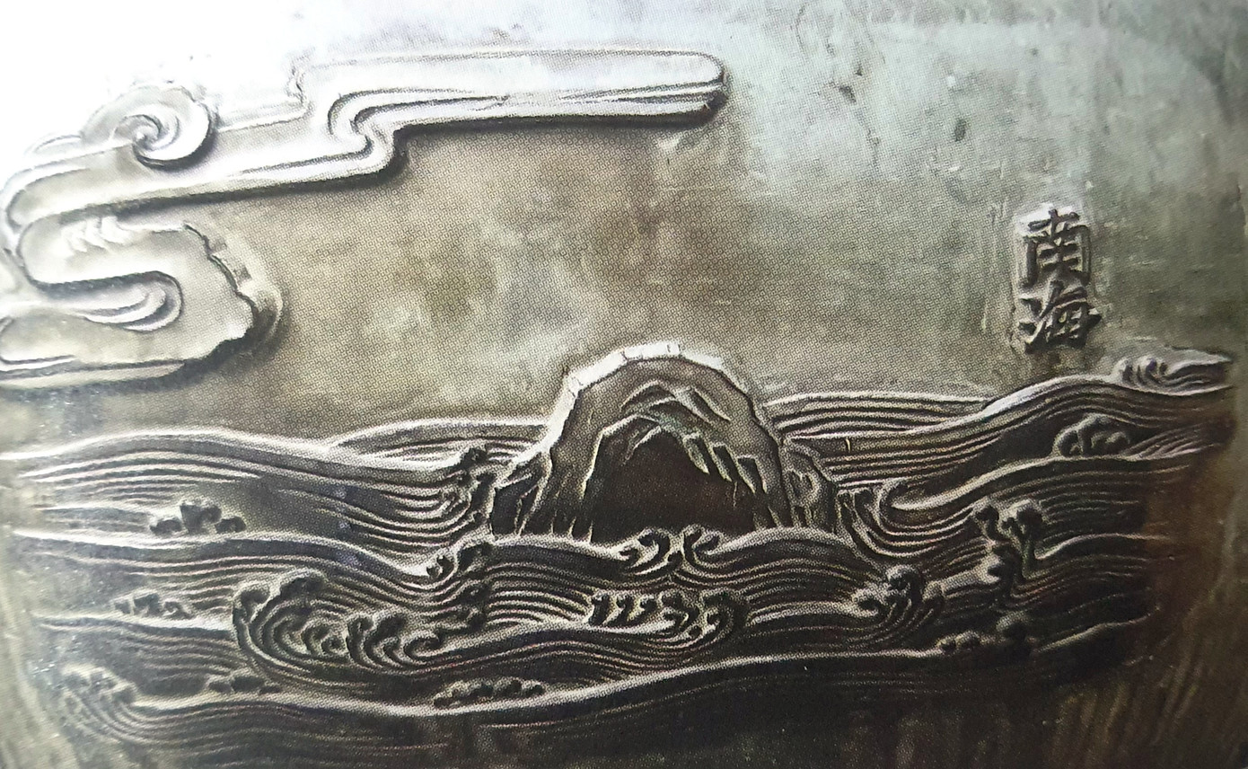 | Theo các tài liệu nghiên cứu, vua Minh Mạng cho đúc Cửu đỉnh nhằm biểu thị sự trường tồn của triều đại, sự giàu đẹp và thống nhất toàn vẹn lãnh thổ của đất nước Việt Nam. Trong ảnh là hình tượng, hoa văn, họa tiết đúc nổi về "Nam Hải" - vùng biển phía Nam của Tổ quốc. |