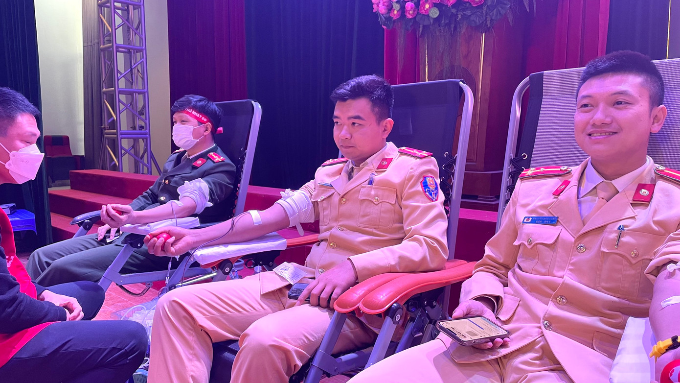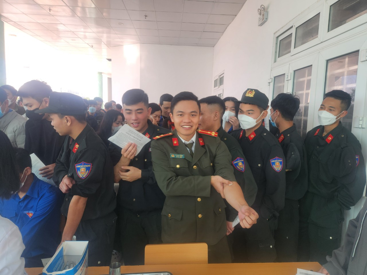 | Ngay từ sáng sớm, các chiến sỹ Công an tỉnh Thanh Hoá đã có mặt tại địa điểm tổ chức hiến máu để làm các thủ tục hiến máu. |