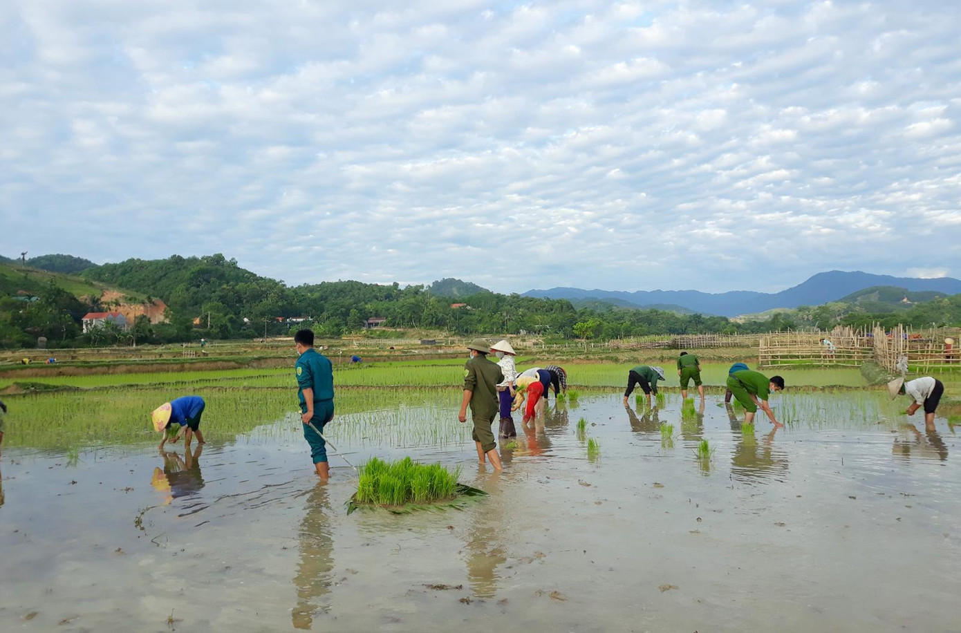 Sau nhiều ngày tích cực xuống đồng cấy lúa với sự giúp đỡ của các lực lượng, đến nay vụ cấy lúa hè – thu của các hộ dân bị ảnh hưởng bởi dịch COVID– 19 tại thôn Lùm Nưa cơ bản đã hoàn thành. Các hộ dân trên địa bàn đã yên tâm để tiếp tục thực hiện các biện pháp cách ly để phòng, chống dịch COVID – 19 theo quy định.