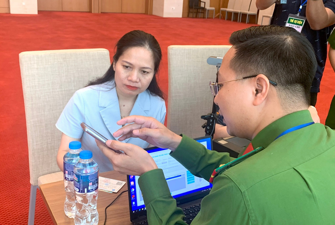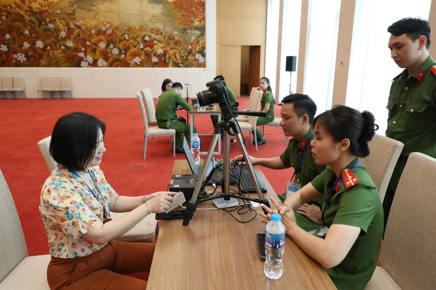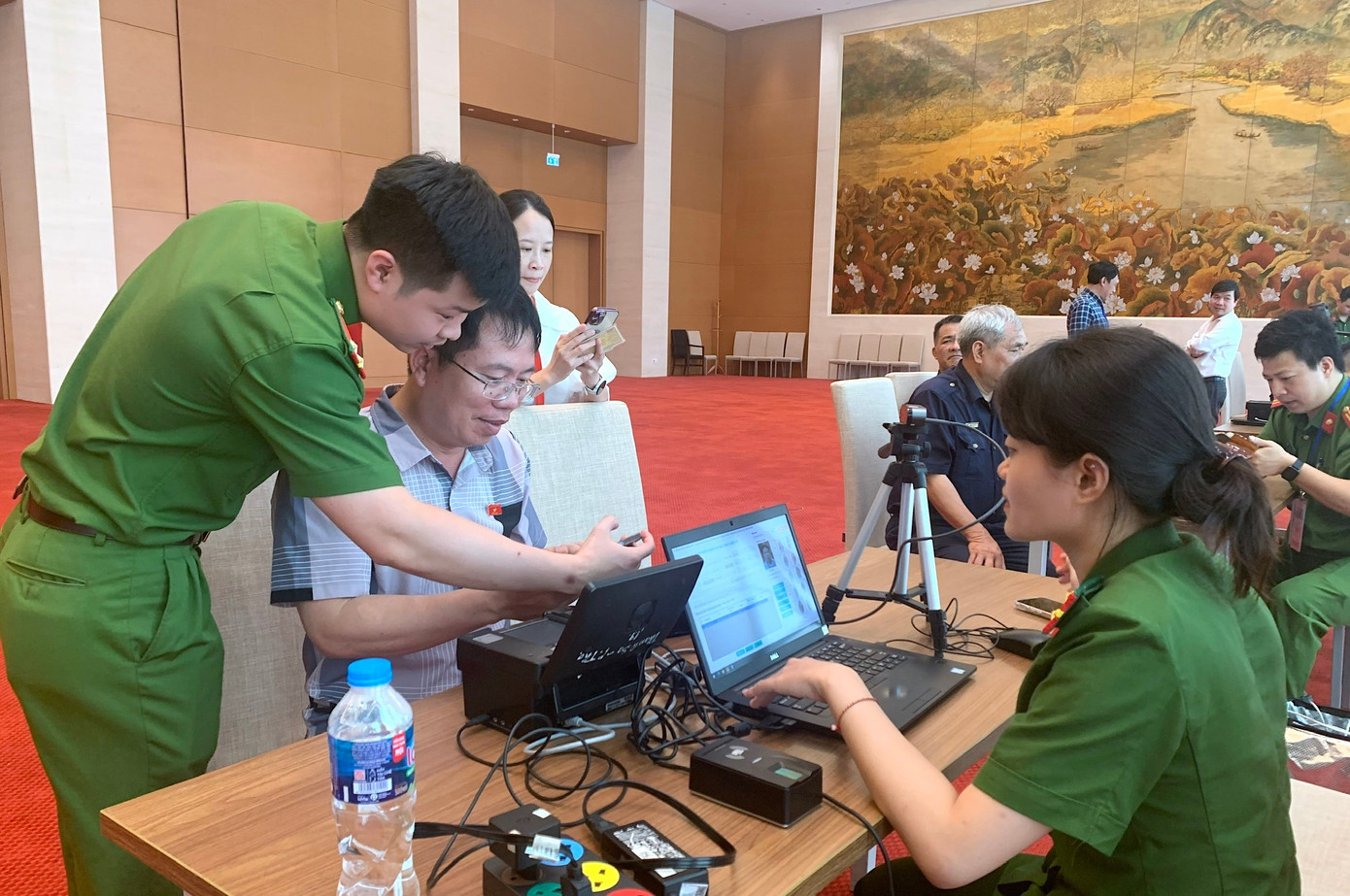 | Cán bộ công an cấp định danh điện tử cho các đại biểu Quốc hội tại Nhà Quốc hội |