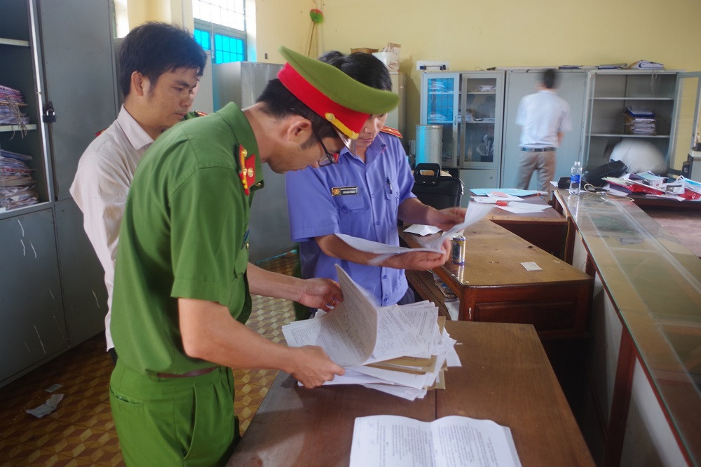 | Cơ quan chức năng khám xét nơi làm việc của Thắng |