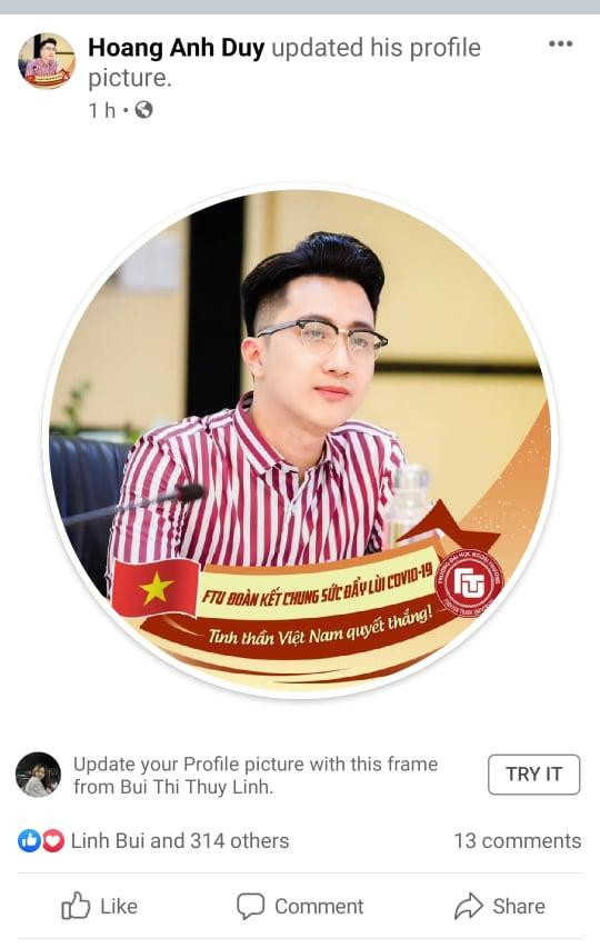 Để cổ vũ tinh thần cho các bạn sinh viên Nhà trường, đông đảo cán bộ, giảng viên, sinh viên nhà trường đã thay ảnh đại diện với dòng khẩu hiệu: “FTU đoàn kết, chung sức đẩy lùi dịch bệnh covid-19! Tinh thần Việt Nam quyết thắng!”