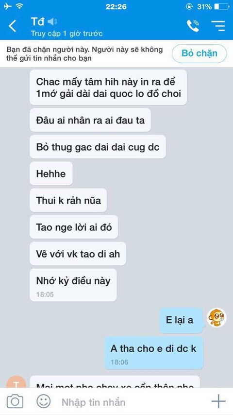 Sau một thời gian, cả hai chia tay, Đệ đi lấy vợ. Dù đã kết hôn nhưng Đệ vẫn chủ động liên lạc và rủ chị T. vào nhà nghỉ để quan hệ tình dục. Khi chị T. không đồng ý, Đệ dùng hình ảnh, video clip kể trên để “tống tình”, ép buộc chị T. đi nhà nghỉ.