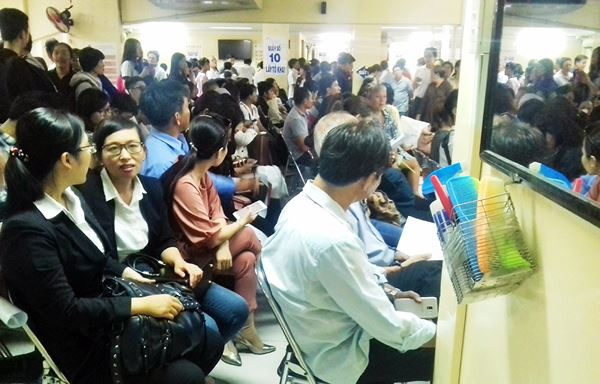 Khi dòng người vẫn như thác đổ vào làm thủ tục thì cơ quan chức năng đưa biển "Hết chỗ phòng chờ" và những người đến trễ (có khi chỉ vì đi tìm điểm gửi xe quanh các con phố lân cận) đành phải chờ đến buổi làm việc sau.