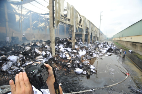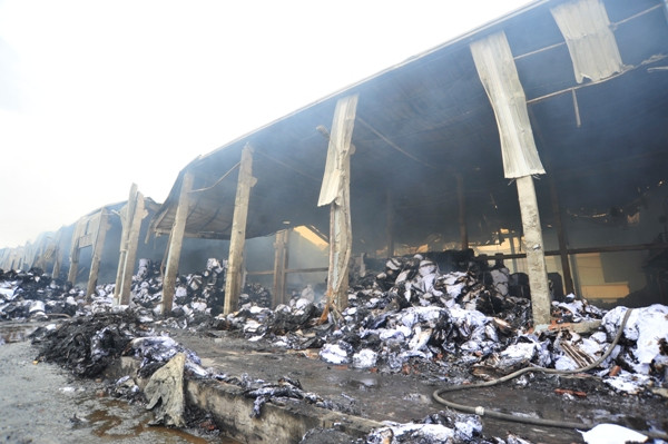 Theo ghi nhận của phóng viên tại hiện trường, sau nhiều giờ chìm trong biển lửa, gần 8.000m2 nhà xưởng của Cty Thành Đạt đã bị thiêu rụi.