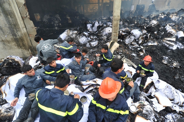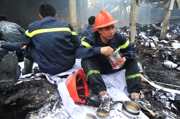 Lính cứu hỏa rã rời sau 18 tiếng dập lửa