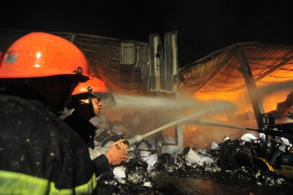 TPO - Nhà máy sản xuất giấy thuộc Cty CP giấy Thành Đạt nằm trong khu Công nghiệp Phong Khê (TP Bắc Ninh) với diện tích 8.000m2 đã bị lửa thiêu rụi trong gần 18 tiếng đồng hồ, thiệt hại lên đến hàng trăm tỷ đồng.