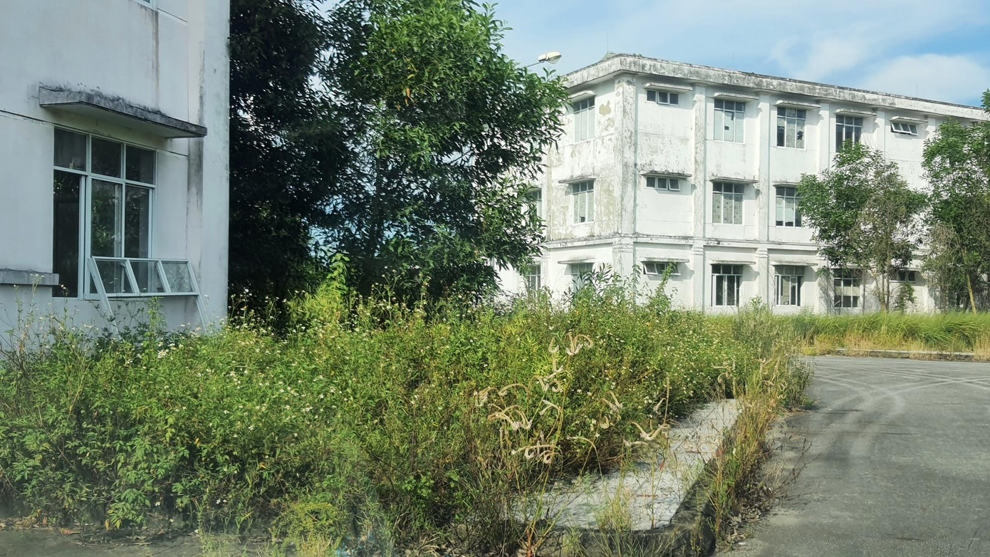 Các dãy nhà đại thể, chống truyền nhiễm, xử lý rác thải… dường như bỏ hoang đã lâu, cửa kính bị phá hỏng, rác rưởi chất đống, cây dại mọc cao lút đầu người.