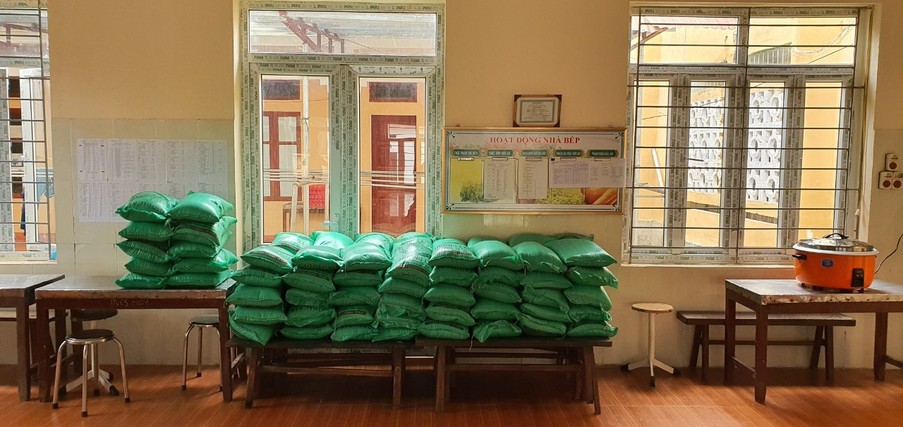 Gạo, thực phẩm tươi sạch được chuẩn bị hàng ngày