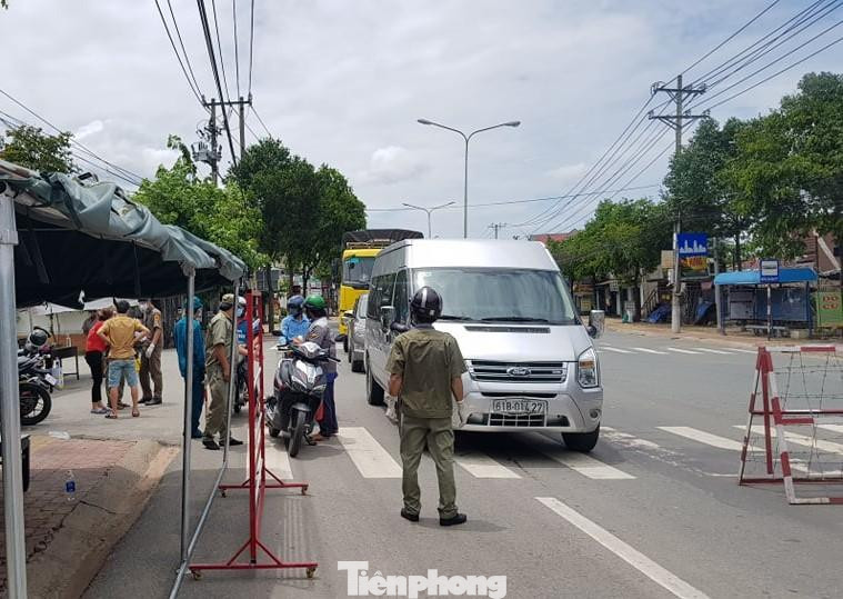 | Theo Ban chỉ đạo phòng, chống dịch COVID-19 tỉnh Bình Dương cho biết, bình quân mỗi xã, phường trên địa bàn bố trí khoảng 10 chốt để kiểm soát dịch bệnh. Ngoài ra còn có lực lượng tuần tra lưu động và xe phát loa tuyên truyền công tác phòng, chống dịch để người dân tuân thủ quy định. Trong ảnh: Bình Dương đồng loạt lập chốt kiểm soát người ra đường (Ảnh: Phú Cường) |