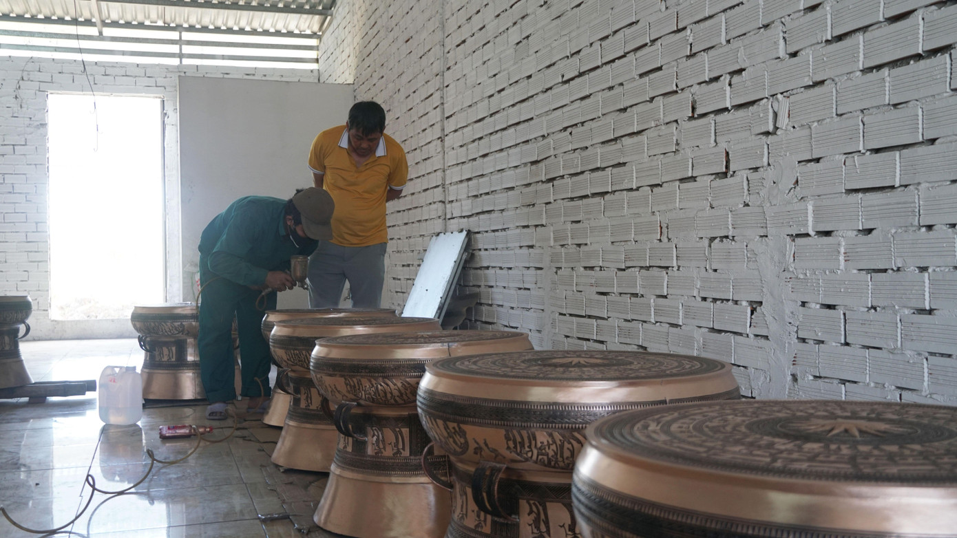 Bộ trống đồng được hoàn thành, sẵn sàng cung tiến vào dịp Giỗ Tổ.