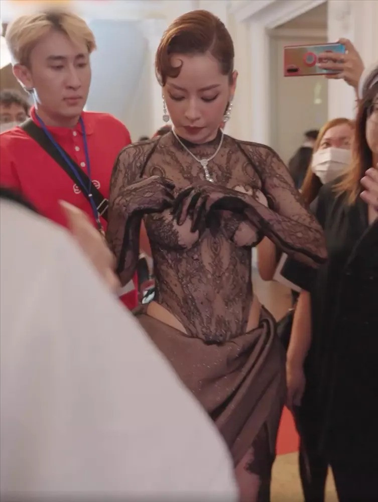Ngay cả khi xuất hiện trêm thảm đỏ, Chi Pu vẫn "đốt mắt" người nhìn bằng váy áo mỏng tang lộ nội y hoặc những khoảng hở mênh mông khoe chân ngực căng tràn hoặc đôi chân thon thả.