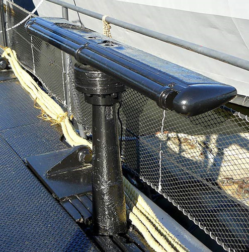 Tháp quan sát của tàu. Tàu dài 95m. Thủy thủ đoàn gồm 10 sĩ quan và 65 thủy thủ.