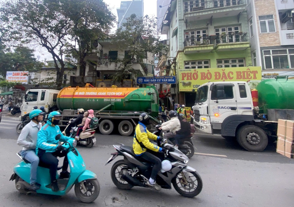 | Một số đoạn ngõ 7 phố Giang Văn Minh chất lỏng đã tràn và dâng lên cao; giao thông tại đây tạm thời bị phong toả. |