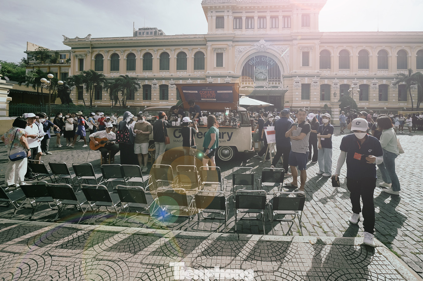 | Anh Lại Văn Mạnh (ngụ TP Thủ Đức) tranh thủ thưởng thức ly cà phê miễn phí trước cổng Bưu điện trung tâm chia sẻ: "Quá hay, quá vui, quá phấn khởi cho sự phục hồi sau đại dịch của TPHCM. Trước khi tham gia tour này, tôi tranh thủ đạp xe vòng quanh trung tâm, hít thở không khí. Theo hướng dẫn viên, tôi mới được ngắm nhìn TPHCM từ nhiều góc độ. Tôi được trải mình dưới hàng me xanh của Đường sách TPHCM. Tôi được khám phá những công trình kiến trúc có tuổi đời trên trăm năm". |