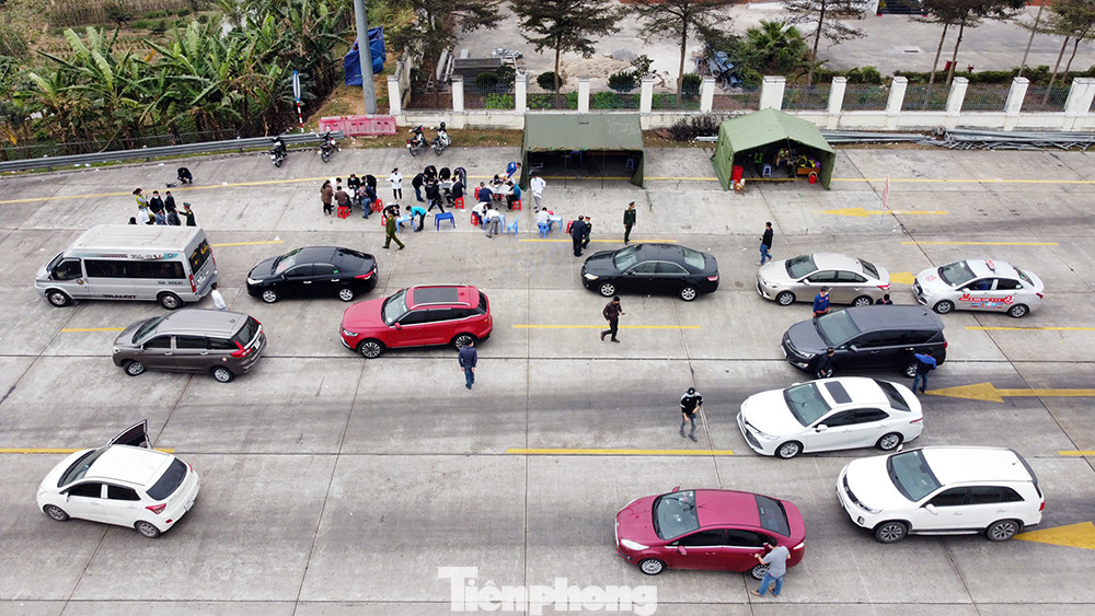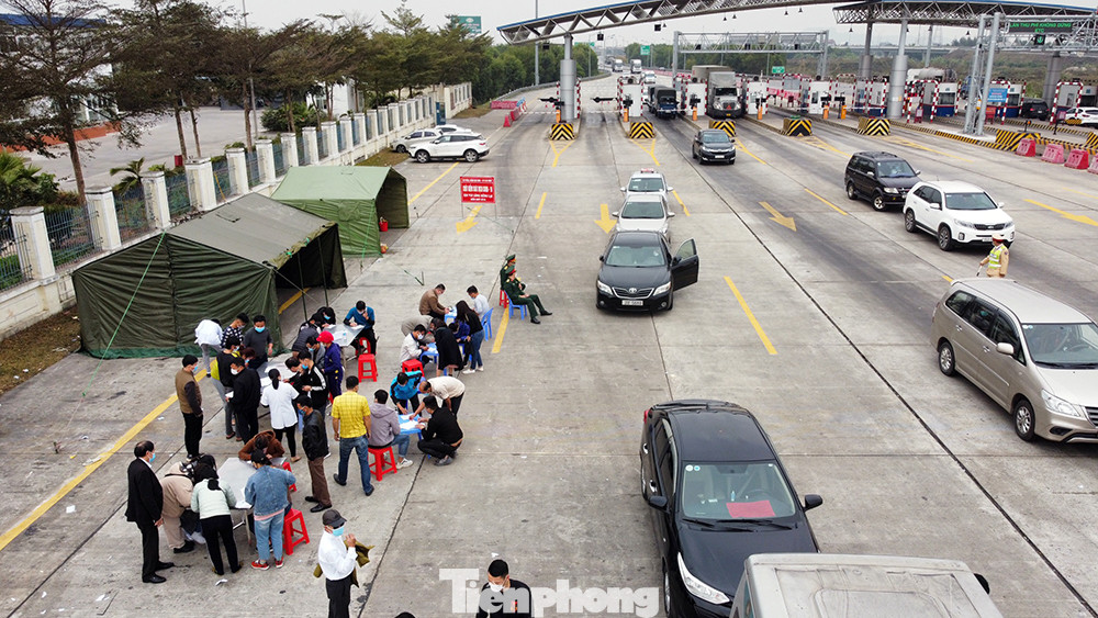 Các chốt kiểm soát tại QL5, cao tốc Hà Nội - Hải Phòng, các tuyến đường giáp ranh với Hải Dương và Quảng Ninh. Theo đó, liên ngành công an, y tế, quân đội kiểm tra thân nhiệt, điểm di chuyển, khai báo y tế đối với tất cả người ra vào thành phố Hải Phòng. Trong ảnh, chốt kiểm soát tại cuối cao tốc Hà Nội - Hải Phòng.