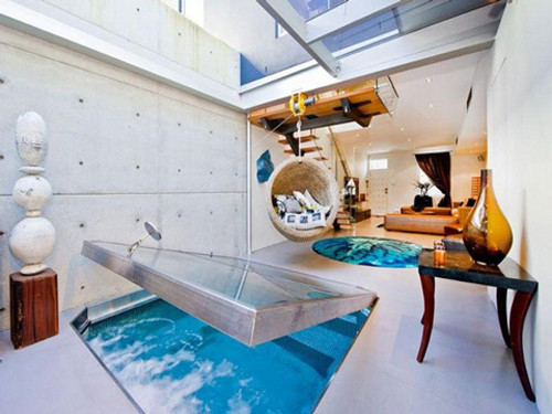 Cận cảnh căn nhà có bể bơi trong phòng khách