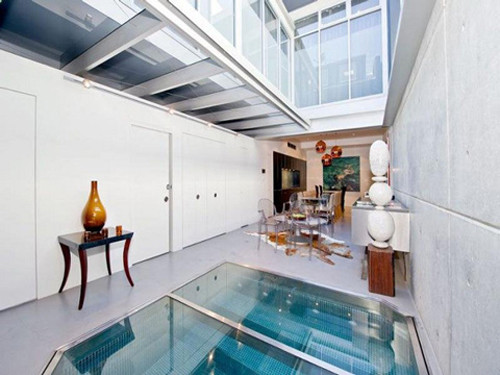 Khi chủ nhà không sử dụng, hồ bơi được đậy nắp kính để có chỗ đi lại giữa các phòng.