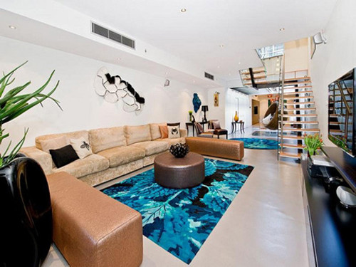 Thảm trong phòng khách cũng lấy cảm hứng từ đại dương xanh thẳm.