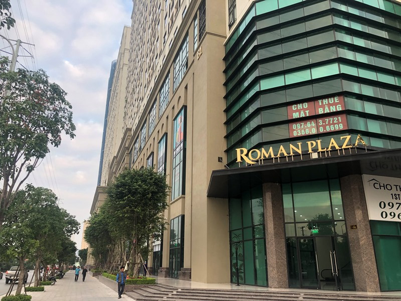 Hệ thống các tòa nhà cao tầng Roman Plaza là một trong những chuỗi cao ốc có mặt tiền tiếp giáp trực tiếp vỉa hè, không còn hàng lang hoặc khoảng không giữa đường và công trình cao tầng.