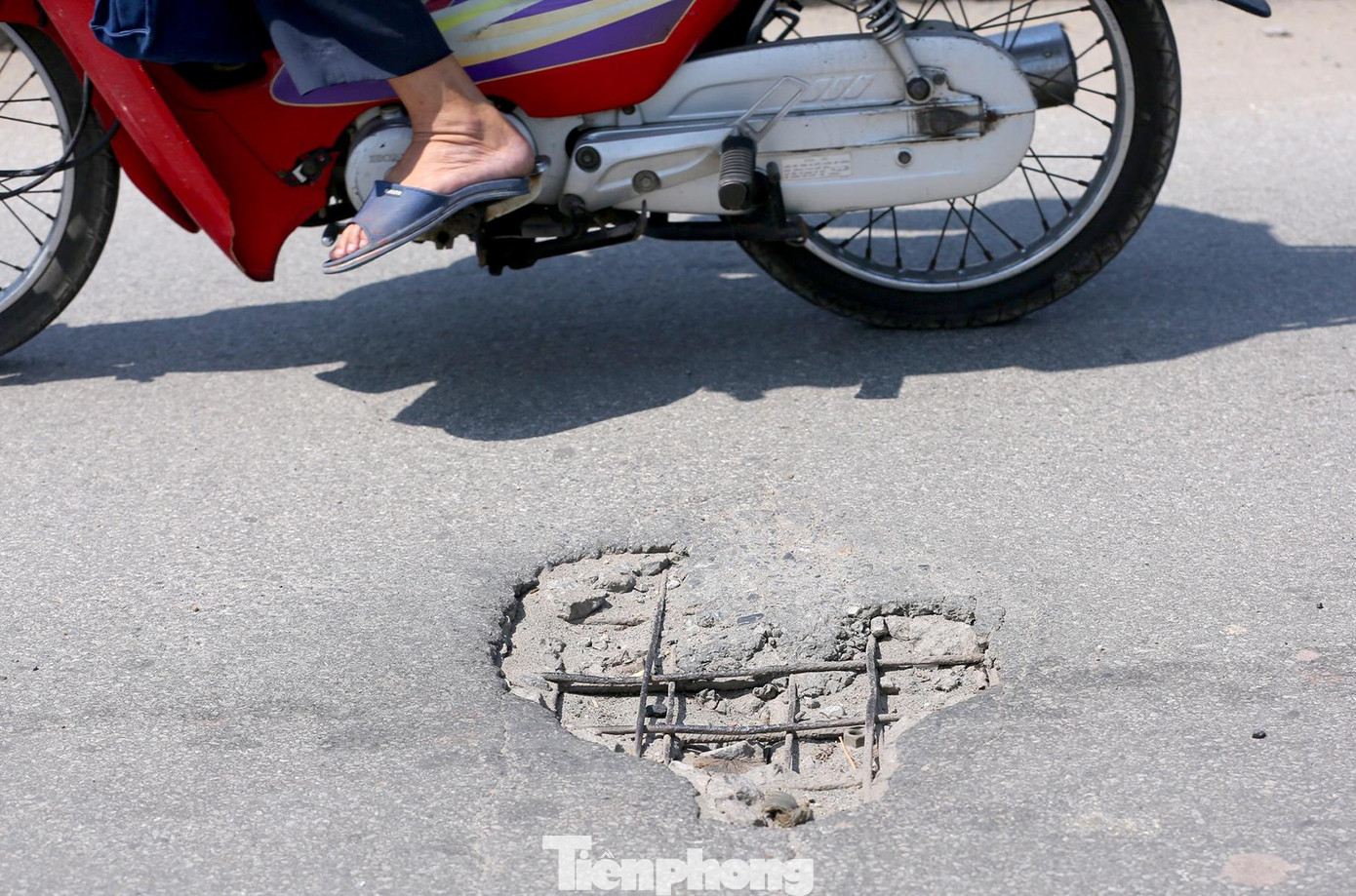 | Mặt đường đầy vết vá chằng chịt sau nhiều lần sửa chữa. |