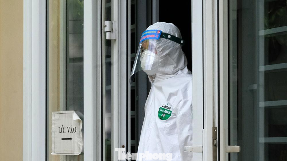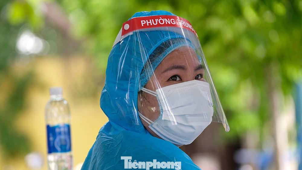 Cán bộ y tế phường được trang bị đầy đủ đồ bảo hộ để đảm bảo an toàn phòng chống dịch.