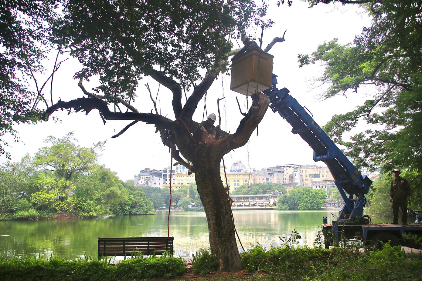 Theo đó, việc chặt hạ bắt đầu từ cây sưa chết khô ven hồ Gươm ở đối diện ngã ba Lò Sũ - Đinh Tiên Hoàng. Cây sưa này có đường kính 59 cm, chiều cao 10-12 mét.