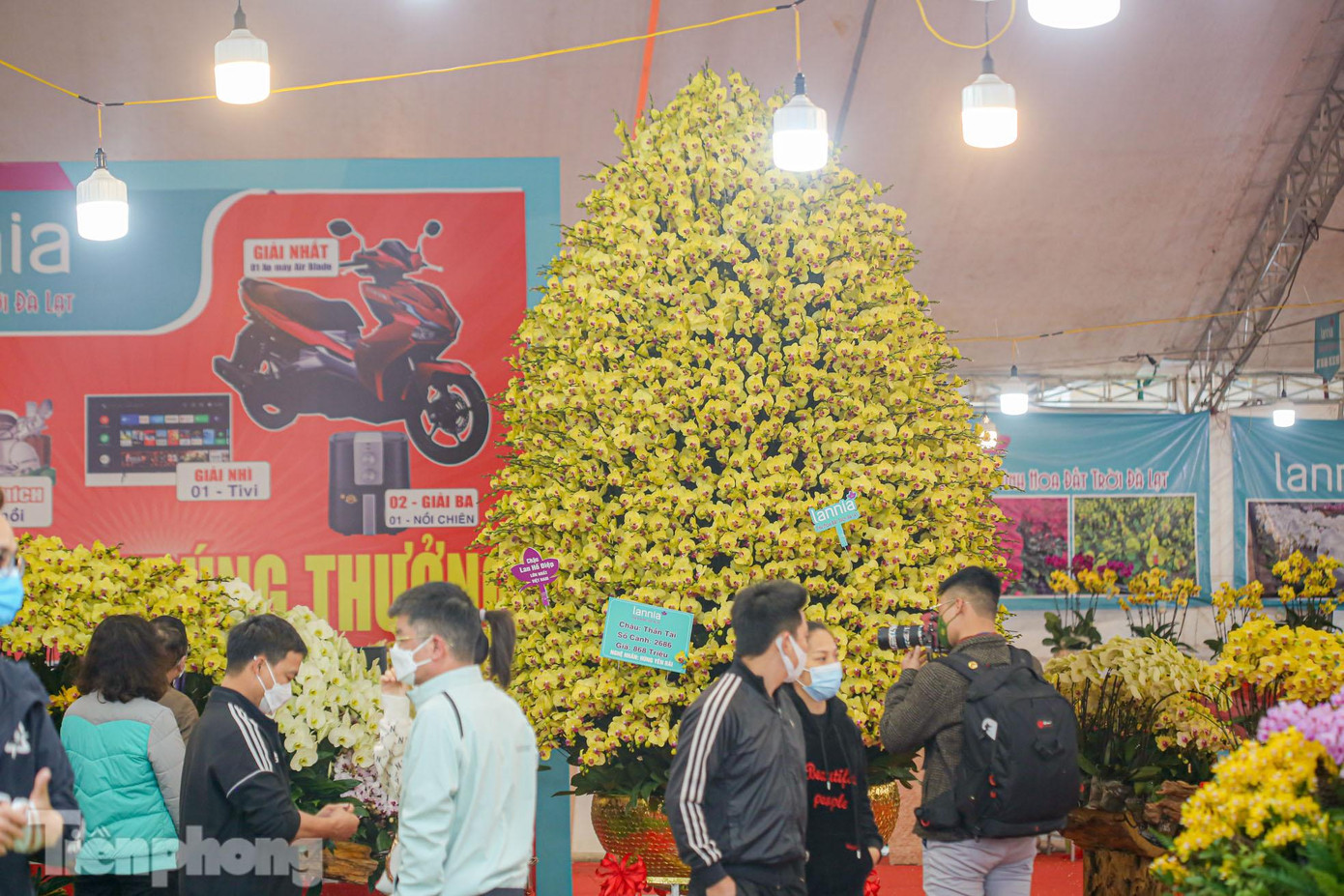 | Chậu lan được nhà vườn treo biển có tên là "Thần Tài" được làm từ 2.686 cành lan xuất xứ từ Đà Lạt với một màu đặc trưng. |