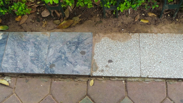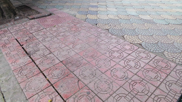 Dù chi hàng tỷ đồng nhưng hiện vỉa hè, đường dạo quanh Hồ Gươm có hơn 20 loại gạch đá khác nhau và thiếu đồng bộ như "chiếc áo vá".