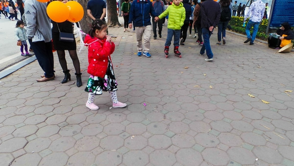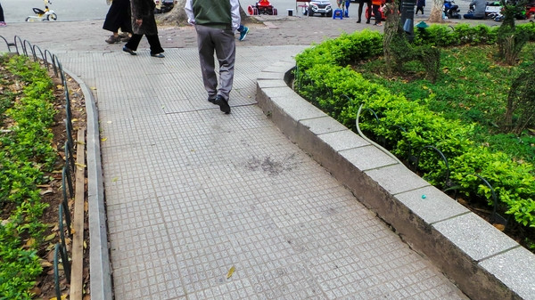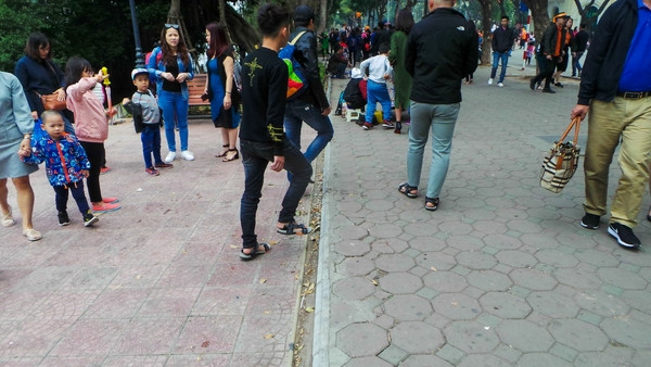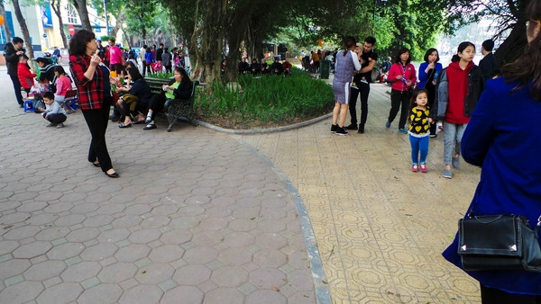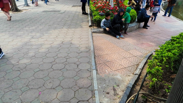 Vỉa hè phía ngoài Hồ Gươm sát đường Đinh Tiên Hoàng được lát bằng gạch block cũ.